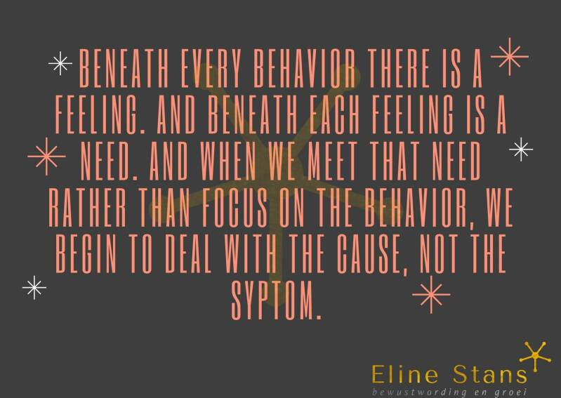 Achter elk gevoel zit een behoefte. Als we de behoefte tegenmoet komen ipv aandacht geven aan het gedrag/ manier van reageren, dan kom je bij de oorzaak.
